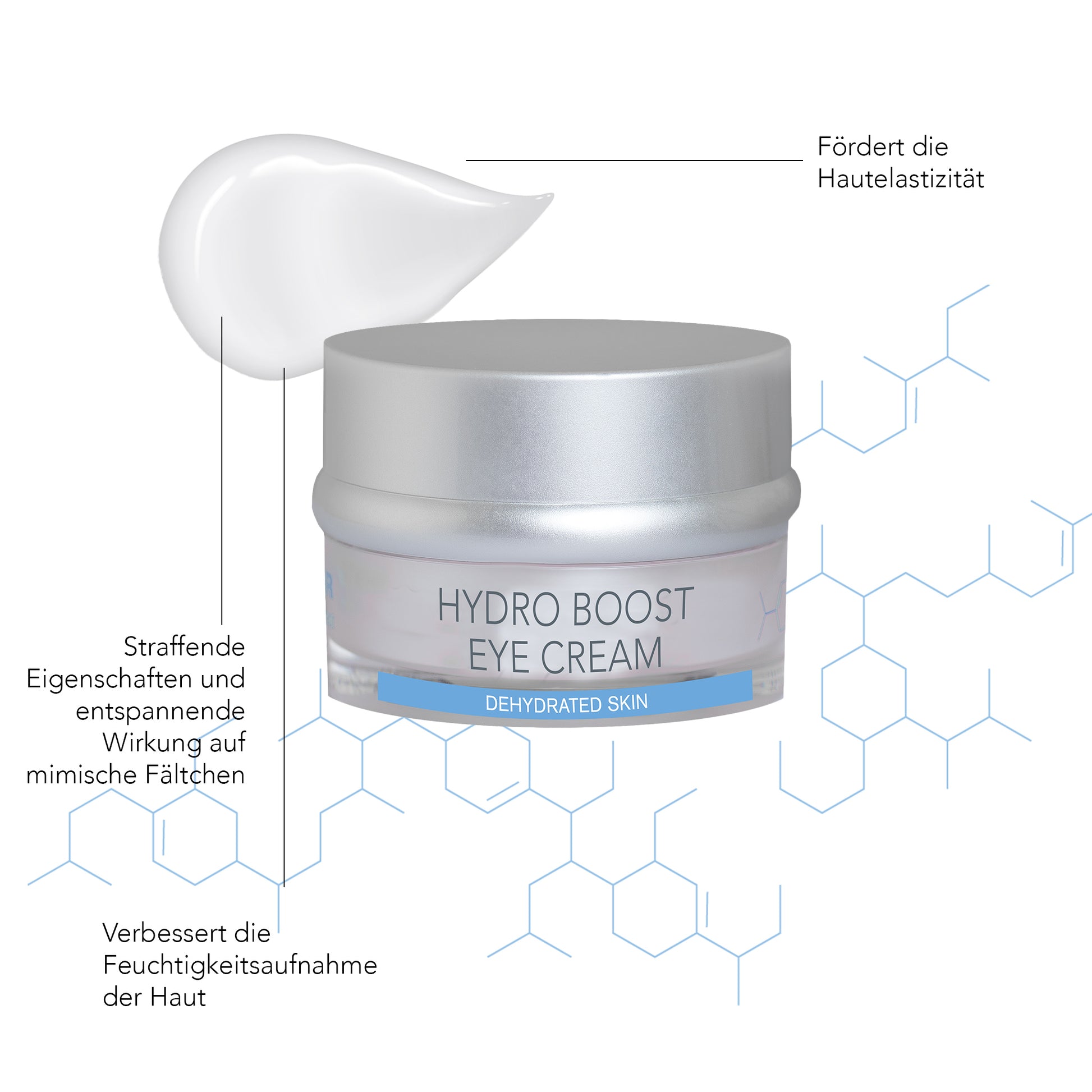 Die kraftvolle Kombination aus vier unterschiedlichen Hyaluronsäure-Molekülen und Rotalgenextrakt sorgt für eine intensiv durchfeuchtete und straffe Augenpartie. Feine Linien und kleine Fältchen werden sichtbar geglättet, wodurch der Blick erfrischt und die Augenpartie jugendlicher und vitaler wirkt.