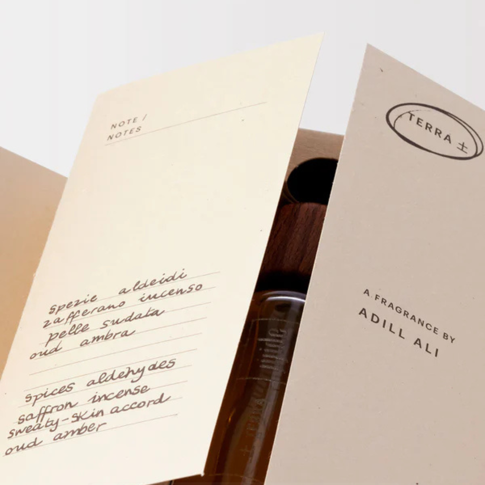 Terra erzählt die Geschichte des afrikanischen Abends, wenn die Hitze nachlässt und die kühle Brise der Nacht die Lust auf Geselligkeit zurückbringt. Warme Noten kenianischer Gewürze, Leder, erhitzter Haut und Oud treffen auf frische Aldehyde, die klare, saubere Akzente setzen und den Einzug der abendlichen Kühle spürbar machen.